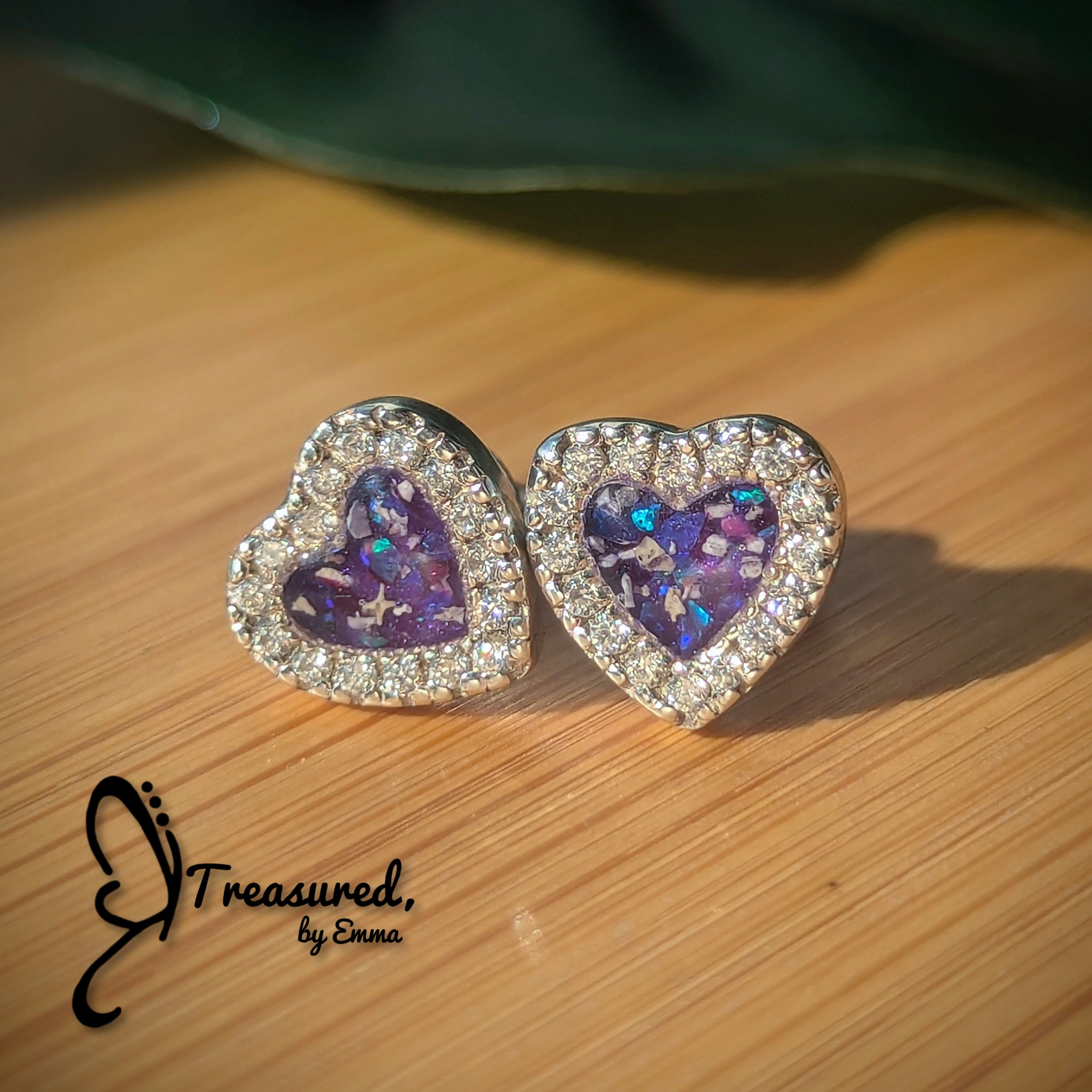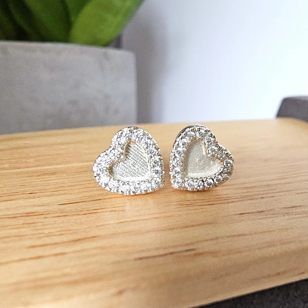 Made using 925 Sterling Silver, these stunning heart shaped earrings have been decorated with cubic zirconias and are perfect for framing your chosen inclusion.