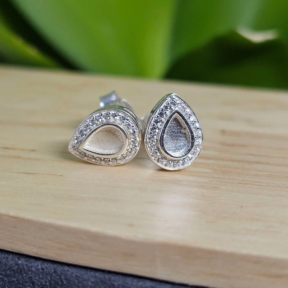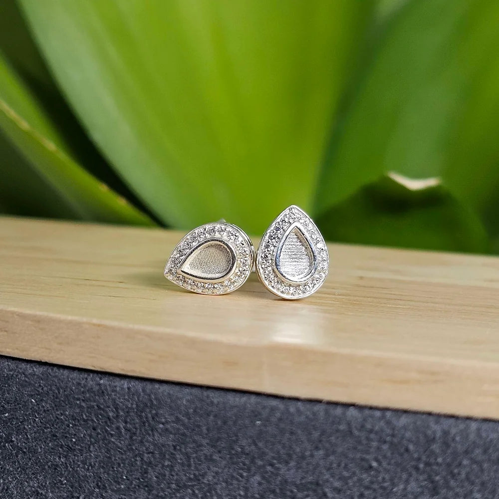 Made using 925 Sterling Silver, these stunning pear shaped earrings have been decorated with cubic zirconias and are perfect for framing your chosen inclusion.