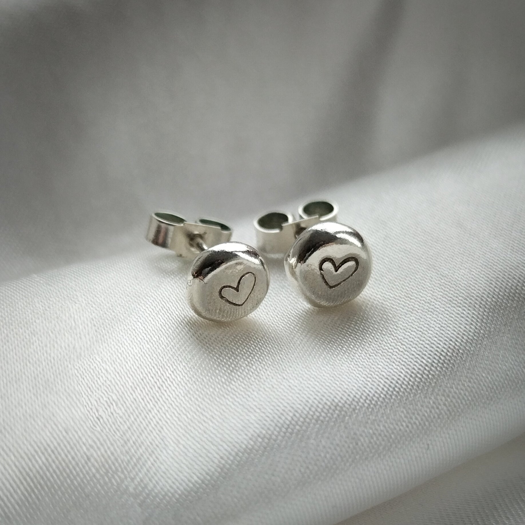 These cute little earrings are handmade from recycled 925 Sterling Silver and have been stamped with hearts ❤️