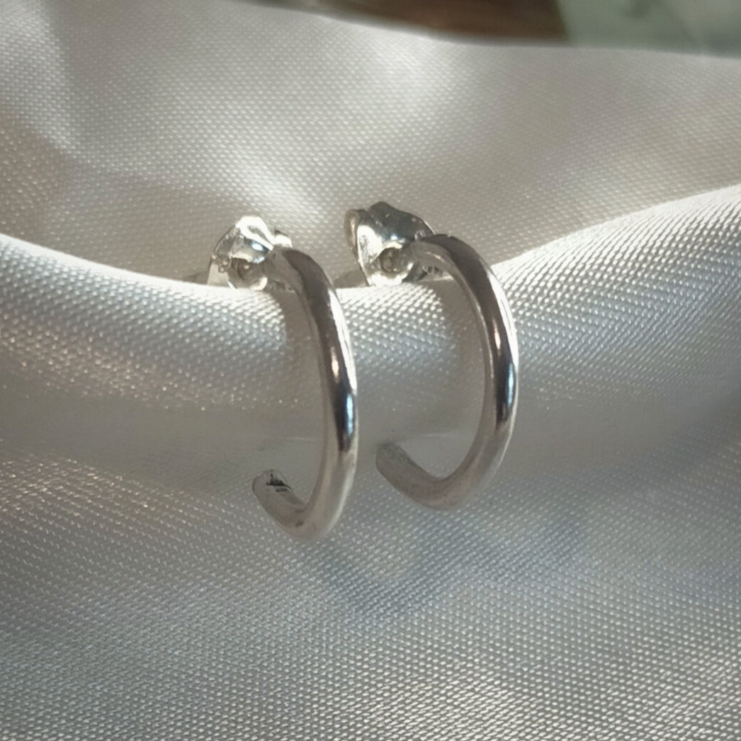 These round huggie earrings are handmade using 925 Sterling Silver.